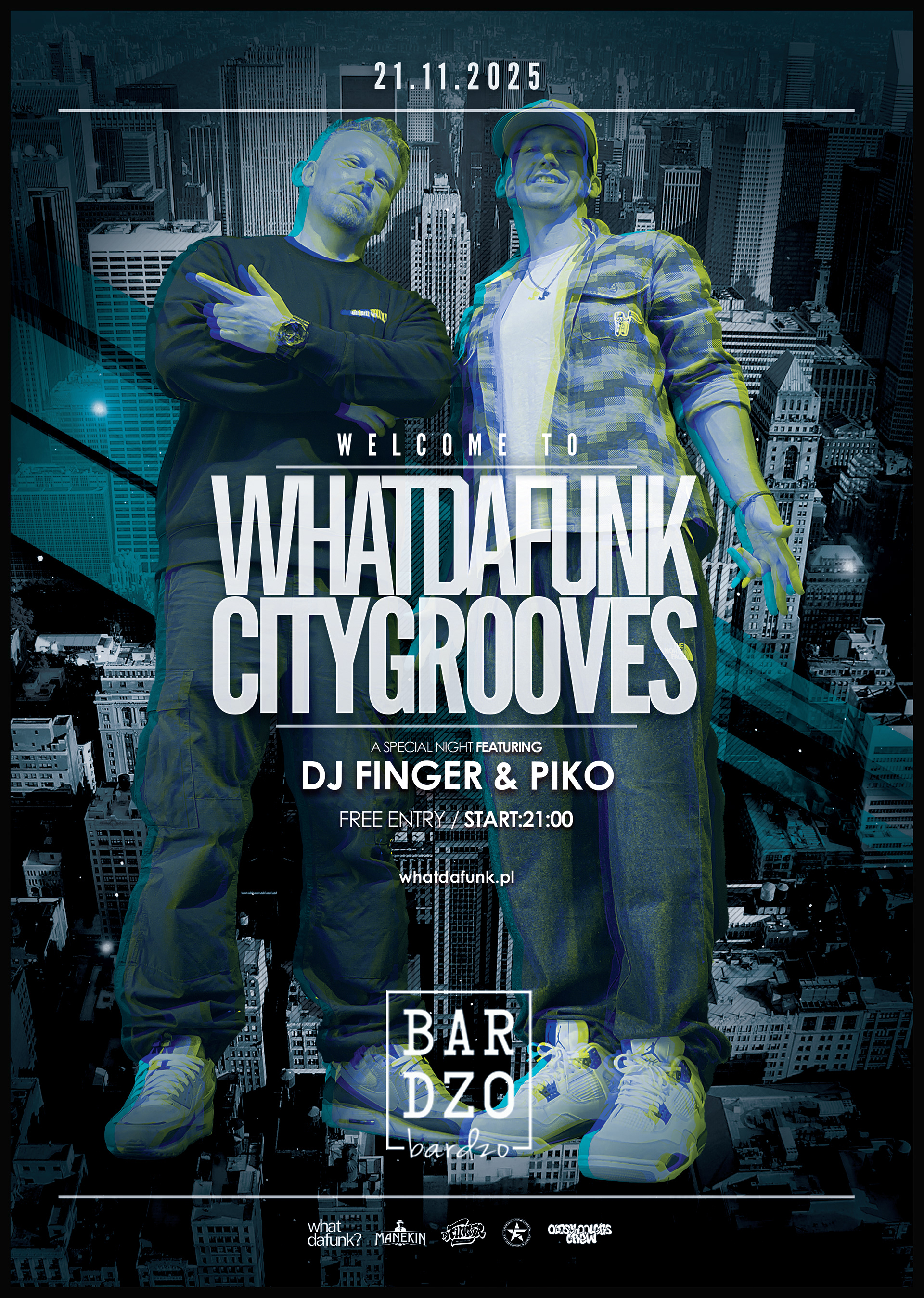 „City Grooves” to coś więcej niż impreza — to chwila zatrzymania w czasie. Spotkanie z kulturą, w której rytm łączy ludzi, a parkiet staje się wspólną przestrzenią swobody, energii i improwizacji. Od korzeni funku i soulu, przez narodziny hip-hopu, po jazzowe i elektroniczne echa lat 90. — z gramofonów, z historią, z miejskim klimatem, który przenosi myślami do Nowego Jorku i Londynu tamtych lat.